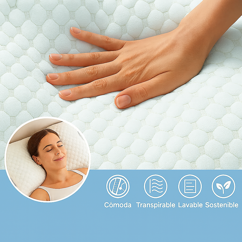Al alinear mejor cuello y cabeza, la almohada reduce el esfuerzo de la musculatura cervical durante la noche y ayuda a que te levantes con menos rigidez.